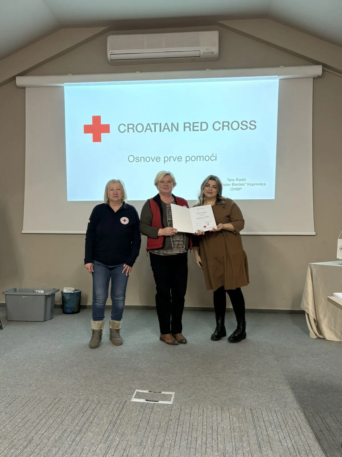 Edukacija je provedena u dva dana, 27. i 28. siječnja 2026. godine u Termama Jezerčica. Teoretska i praktična znanja iz pružanja prve pomoći uspješno je prošlo 29 polaznika. Održan je i tečaj realističnog prikaza ozljeda na kojem je sudjelovalo 9 osoba, a šminkeri su ujedno bili manekeni za vježbe prve pomoći voditeljima podmladaka i mladih. Voditelj edukacije iz prve pomoći bila je licencirana predavačica dr. Tara Radić.